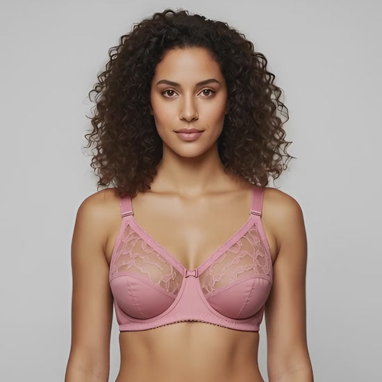 Beige Embroidered Full Coverage Wireless Bra - Non-Wired Comfort Support Minimizer Bra
