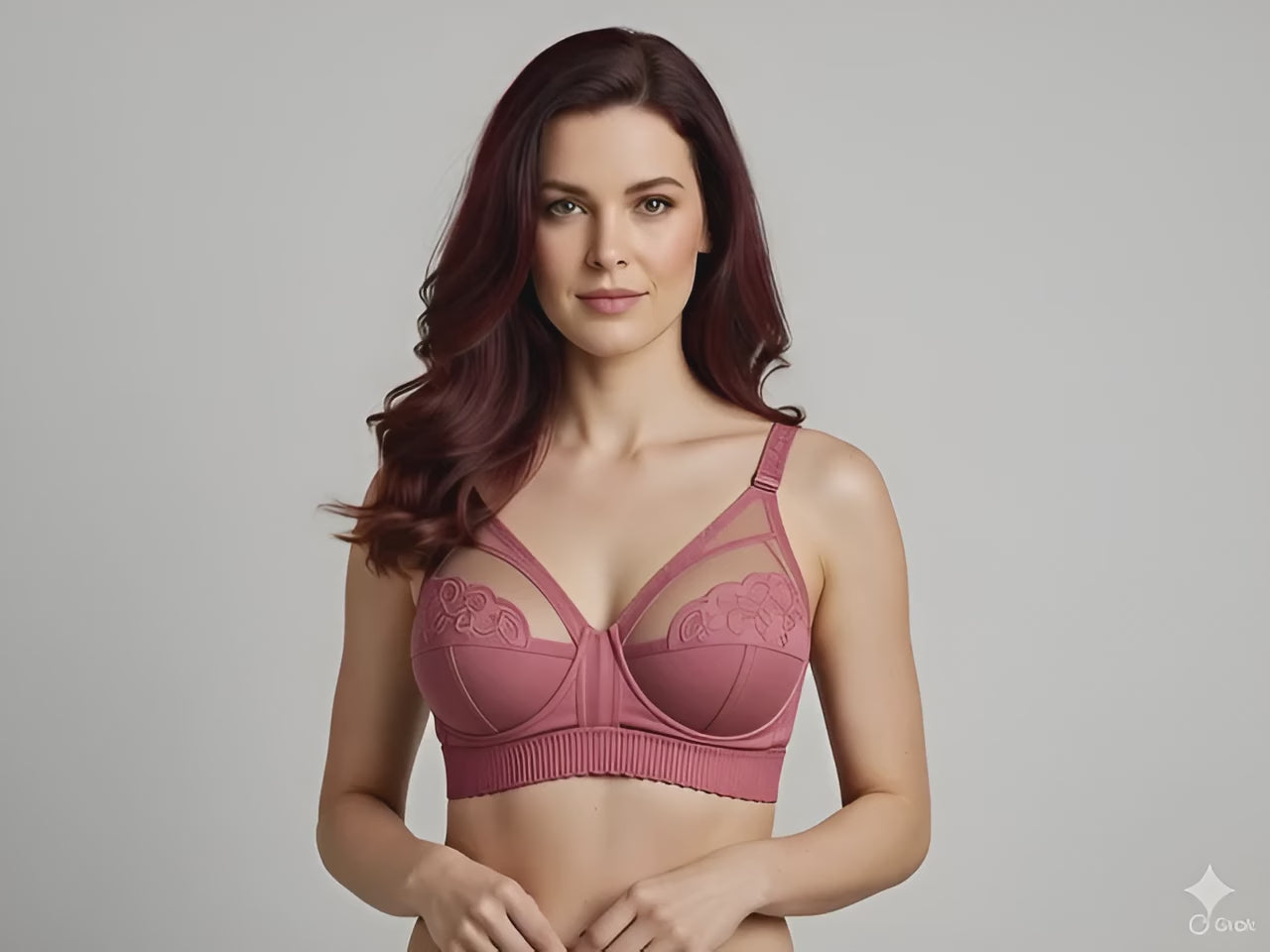 Ivory Embroidered Underwire Longline Bra - Floral Lace Supportive Comfort Bra